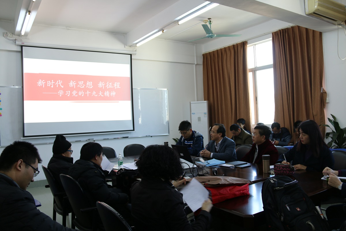 2018年1月11日,我院邀请马克思主义学院副院长余翔博士为全体教职工宣讲党的十九大精神。余翔博士从十九大概况、十九大背景、十九大主题解析、习近平新时代中国特色社会主义思想、党建工作等方面,对党的十九大精神进行了深入解读,并结合学校改革与发展的实际,就如何对标落实党的十九大精神,做了精彩的报告。(多多28党总支)
