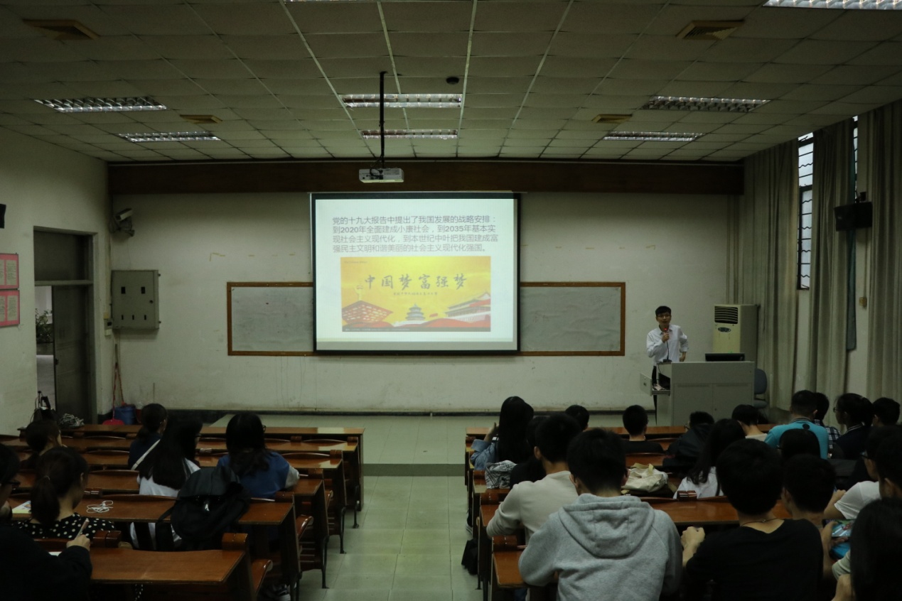 梁海华院长首先和同学们重温了党的十九大报告中提到的中国梦,重温了2018年习近平在北京大学师生座谈会上提到的“广大青年要成为实现中华民族伟大复兴的生力军,肩负起国家和民族的希望”,以此勉励我院大学生要肩负历史使命和责任,从提高个人素养开始,为实现中国梦而奋斗。随后,梁海华针对当前大学生重学业、轻思想素养的现状,提出了大学生如何加强思想政治修养的具体方法。梁海华还结合数学专业的特点以及自身学习、教学的经验和体会,和同学们分享了如何学好特别是如何学好数学专业核心课程的科学方法。最后,梁海华还鼓励同学们树立理想,及早做好大学生生涯规划,为未来就业、考研打下扎实的基础。