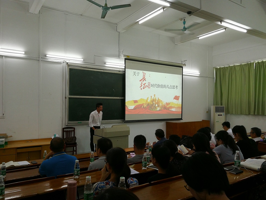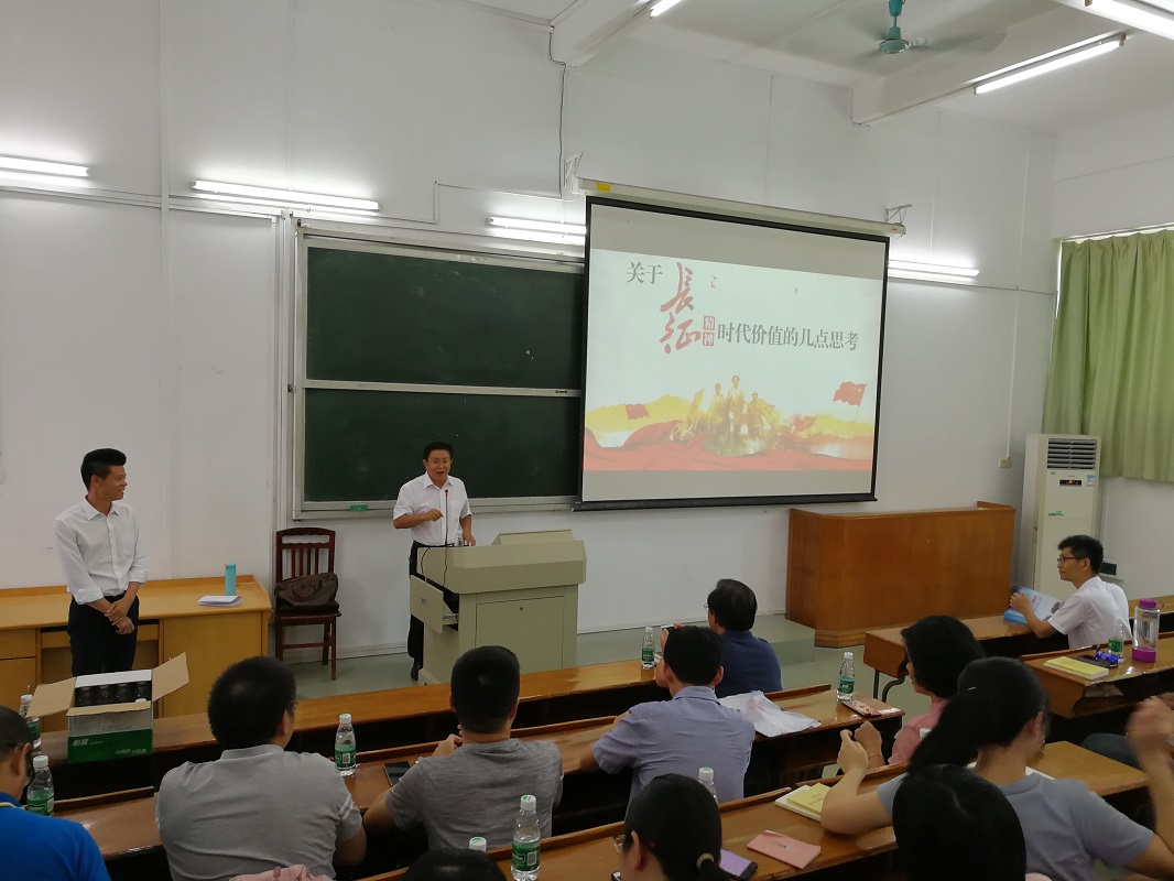 黄文浩在报告的第一部分,用精彩的视频和图片生动地展示了学校党委今年暑期组织开展的“长征路上话初心”思想教育实践活动全过程,黄文浩作为整个活动的参与者,现身说法,与师生们共同分享了“历经10个省、历时26天、历程8000多公里”的再走长征路的难忘历程。