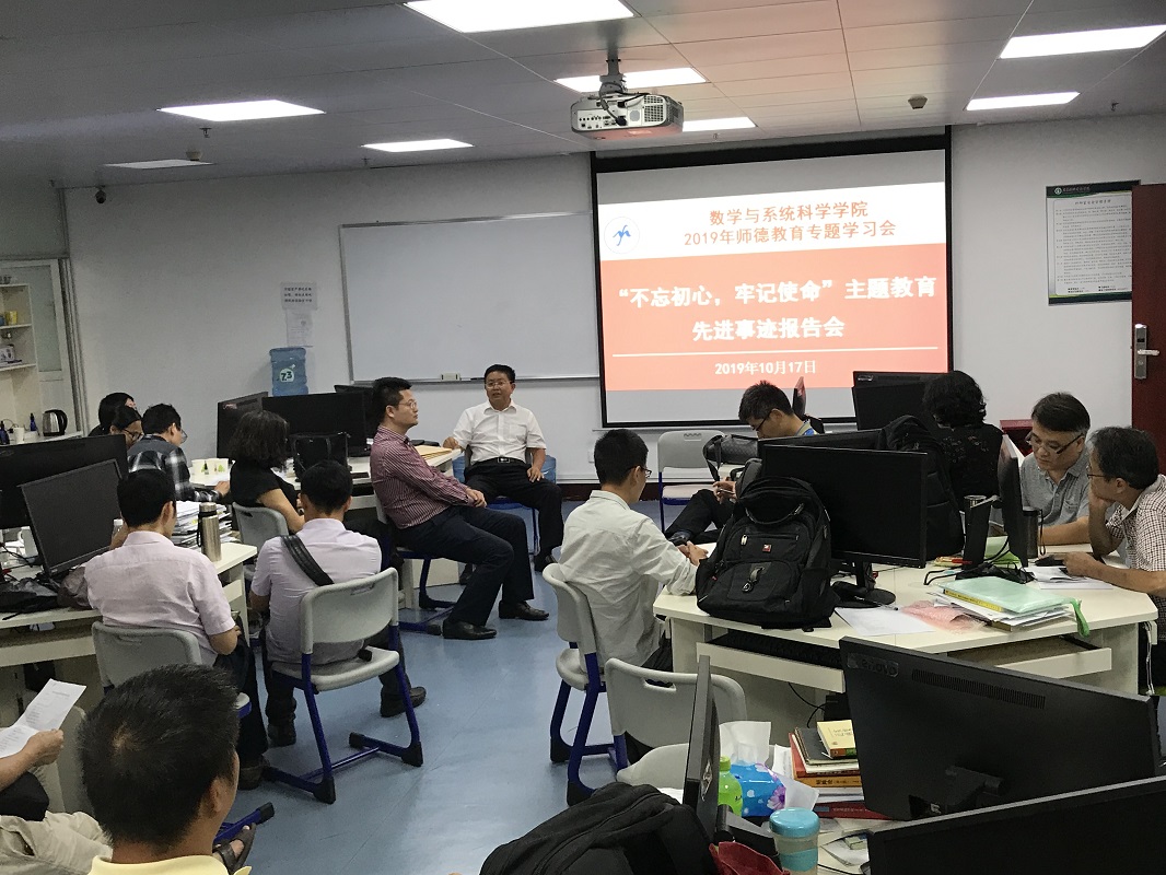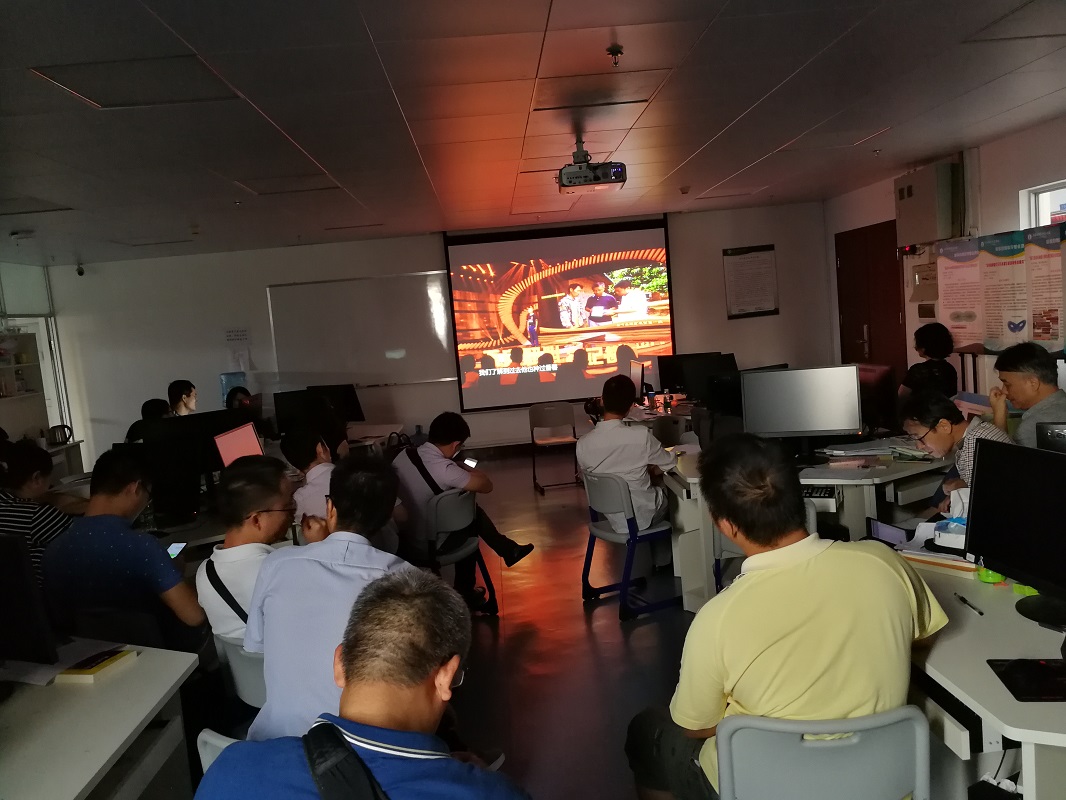 10月17日下午,在东校区工业中心506室,多多28组织全体教师,集体观看全省“不忘初心、牢记使命”主题教育先进事迹报告会。