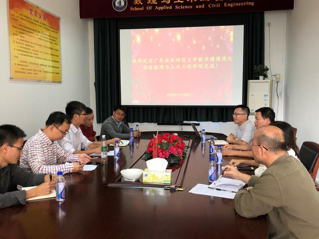 为进一步提高我校大学生数学建模竞赛的组织和管理水平,2019年11月26日,我院数学建模工作小组赴北京理工大学珠海学院交流,学习该校数学建模工作的先进经验。我院数学建模工作小组成员梁海华院长、学科竞赛负责人孙中举老师、多年从事数学建模竞赛工作的彭雪,以及蒋经华和李振彰老师参加了调研交流。北京理工大学珠海学院的数理与土木工程学院的赵志红书记,梅良才主任,贾云涛老师和张平老师参加了本次交流活动。