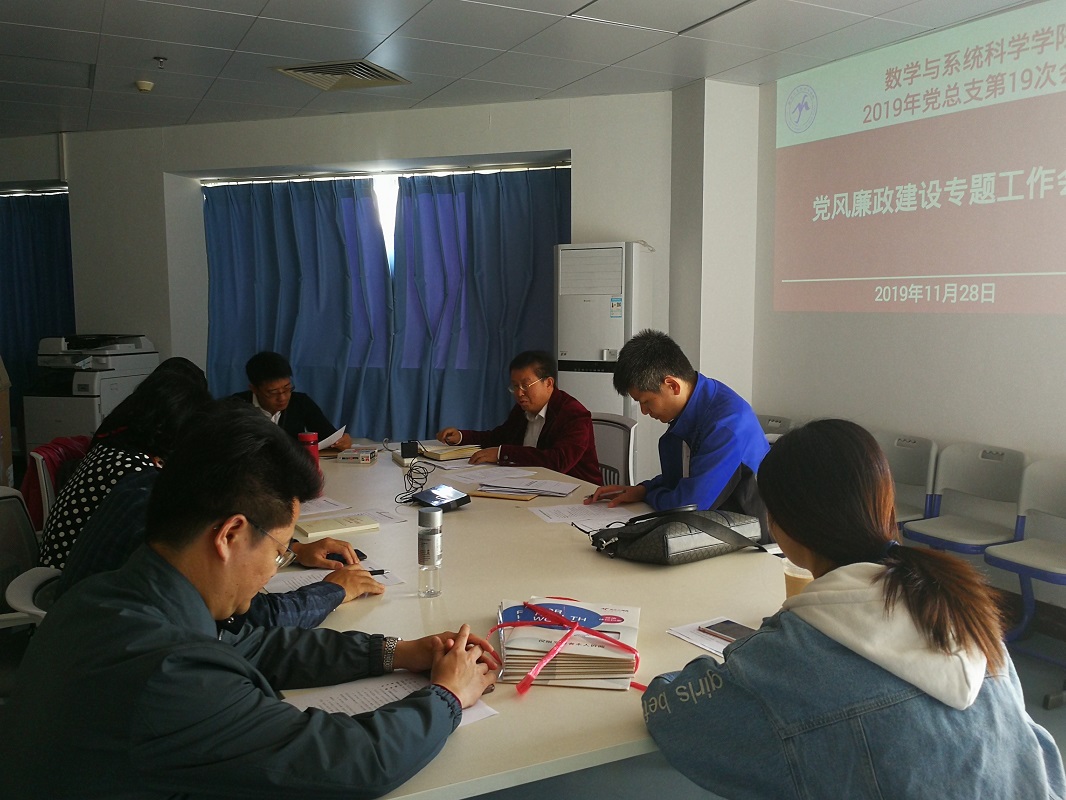 2019年11月28日上午9:00,学院召开党总支委员会专题会议,专题研究党风廉政建设工作。会议由党总支书记房亚兵主持。学院党总支全体委员、非党员班子成员、党政办主任、专职组织员出席了会议。