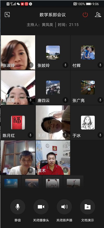 2020年4月16日晚上,我院数学与应用数学系通过企业微信APP召开中期教学检查视频会议。会议由系主任黄凤英主持,围绕着这个学期的线上教学情况、毕业论文进展情况和师资队伍建设的一些建议展开讨论。最后,梁海华院长对本次会议提出的一些疑难问题,进行解答并给出了建议。