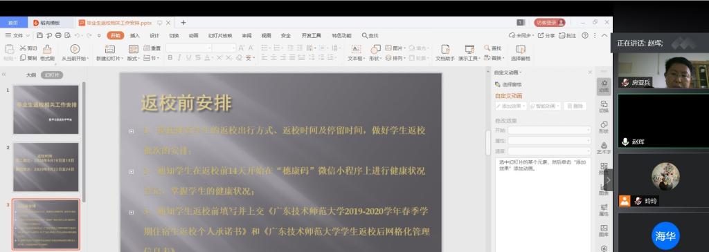 2020年6月11日下午,通过视频会议形式,我院召开毕业生返校离校工作会议,学院党政领导班子成员、党政办主任、辅导员、教务员、各毕业班主任出席了会议。