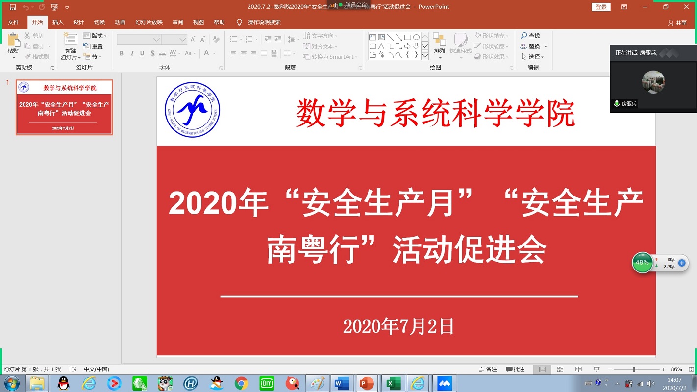 2020年7月2日,以视频会议形式,我院召开2020年“安全生产月”“安全生产南粤行”活动促进会。会议总结了前期工作的开展情况,就下一步工作进行了再部署,要求每一位教职工认真浏览“2020年全国安全生产月”专题网,开展以下方面的学习:一是学习习近平总书记关于安全生产重要论述;二是观看安全生产典型案例;三是参加“安全生产大家谈”云课堂学习;四是参与线上“公众开放日”活动,五是学习观看安全科普资料,六是观看安全体验场360全景示范展示;七是参与安全生产月知识竞赛;八是开展“身边的安全谣言”学习;九是观看“我是安全明白人”抖音视频。