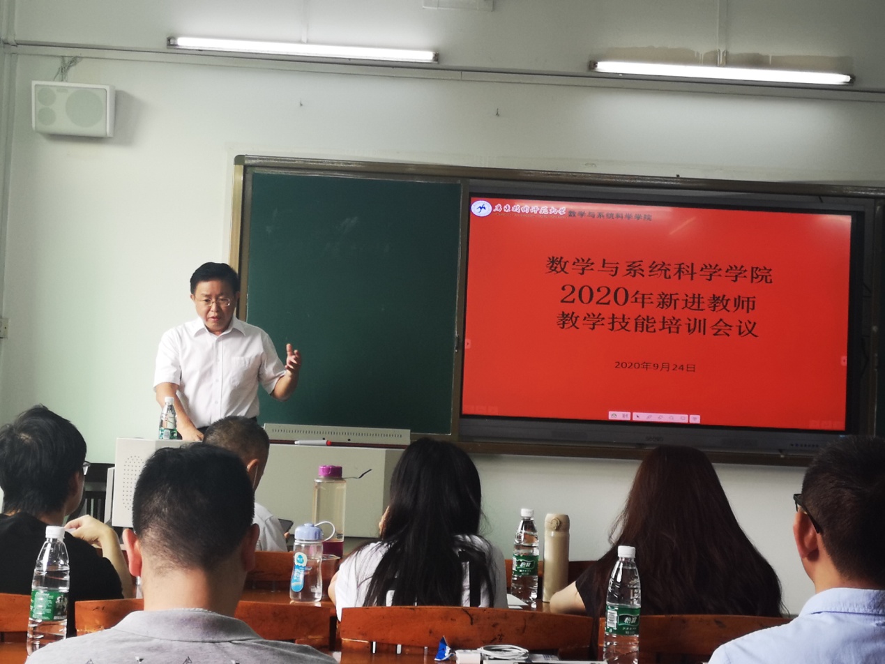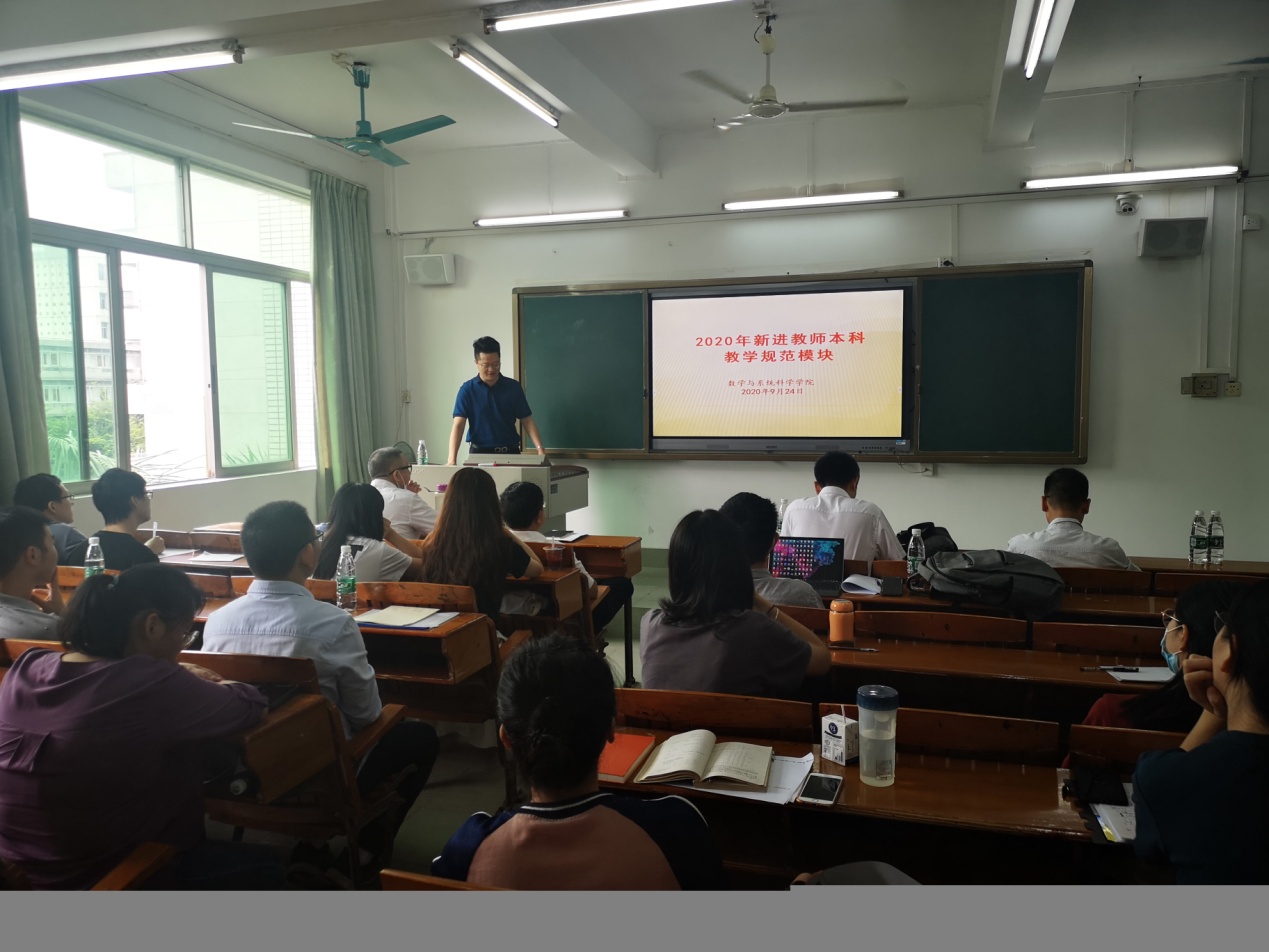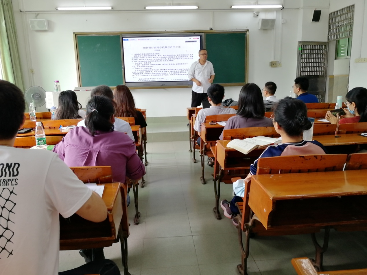 梁海华院长首先对本次培训做了动员讲话。随后,房亚兵书记从恪守师德、廉洁从教等方面对新教师提出了要求;游志福副院长宣讲了我校及我院的教学管理规章制度和日常教学规范;我院教学督导组长肖黎明教授做了题为“如何做好高校数学教学工作”的专题报告。
