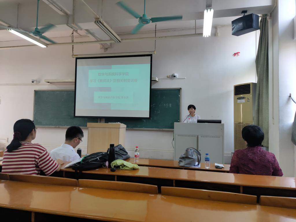 会议特别邀请了我校法学与知识产权学院的李小萍副院长,为全院教师讲解《中华人民共和国教师法》中的有关条文和案例。李小萍教授的研究方向是宪法学与行政发学,对《教师法》有着系统而深入的理解。她结合高校日常教学管理中的相关工作,主要讲解了教师的权利和义务、考核部分,让教师了解清楚教师与二级学院、学校之间的行为关系。她还分享了多个知名的案例,帮助教师理解相关法规对教师行为的约束作用。