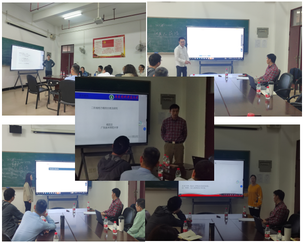 会上,新入职教师丰富、生动的依次报告了自己的个人代表性研究成果、研究进展和未来科研计划:郑召文老师报告《二阶线性方程的分类及研究领域》,蔡方舟老师报告《FELDMAN-KATOK PSEUDO-ORBITS AND SCALED PRESSURE》,周艳辉老师报告《A new high order finite volume element solution on arbitrary triangular and quadrilateral meshes》,巴玉明老师报告《Hybrid_data_assimilation》,刘玲老师报告《复杂网络的给定时间域簇同步控制》。与会教师积极参与相关老师、相关学科方向及相关领域的问题讨论,会议现场气氛热烈、讨论深入、成效显著,分享会获得与会人员的一致称赞。