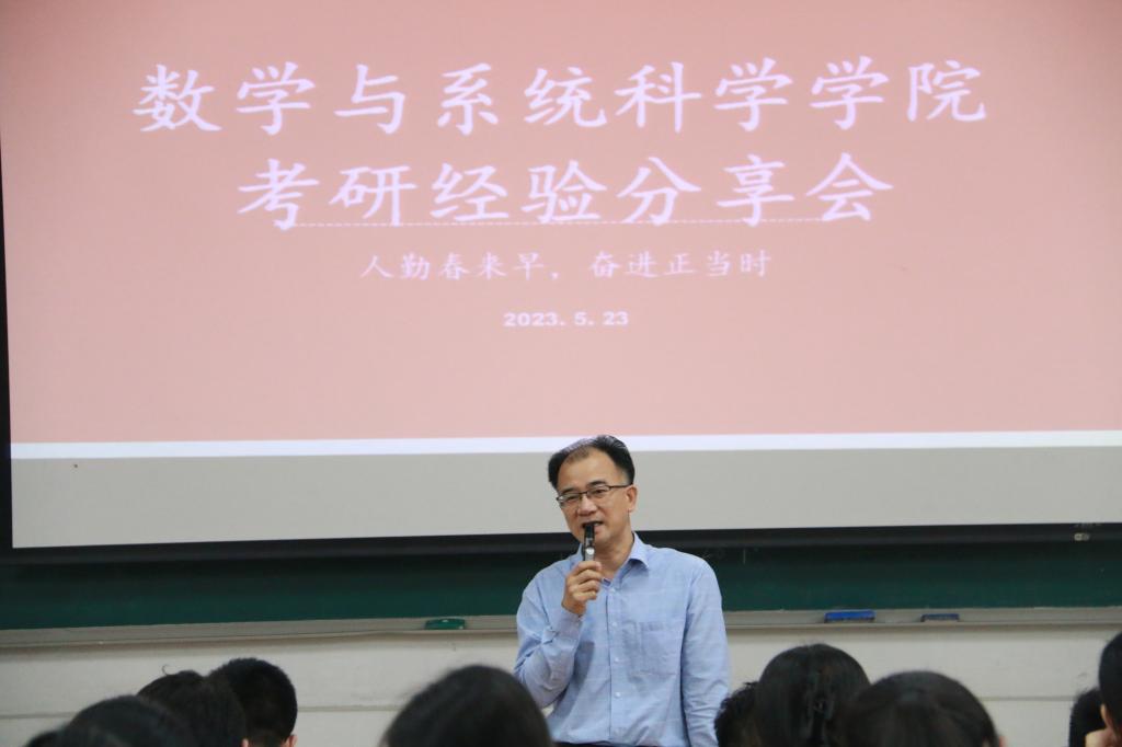 梁海华详细作了考研形势分析,讲解了院内各专业的考研情况、读研优势,希望更多的学生选择考研,提升自身专业水平。他分享了考研策略,一是对自身有准确的评估;二是制定好考研计划。他还介绍了我院学科教学--数学硕士点的建设情况,表示欢迎本院学生进行报考,祝愿同学们明年考研取得好成绩。