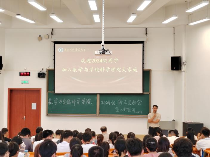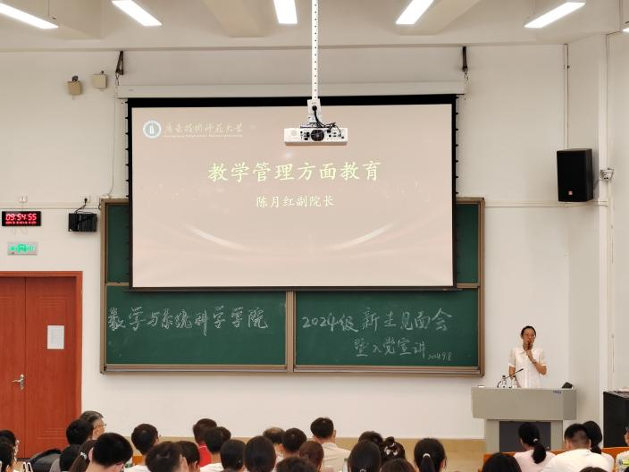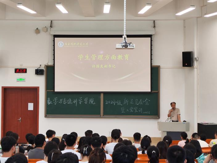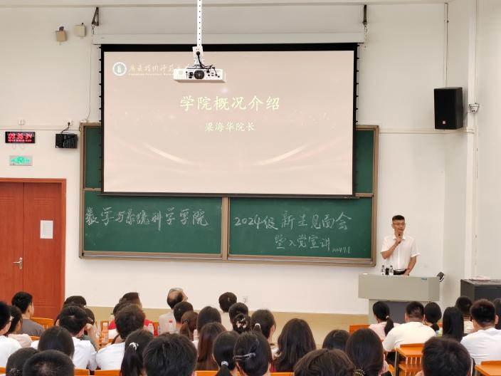 紧接着,院长梁海华介绍了学院的架构、专业布局、师资阵容和学科前沿,就数师、信计和统计的专业特点介绍了各专业的教学模式和人才培养方案,与新生们深入探讨了大学教育的真谛、学习的艺术和生活的智慧。他期望新生们能够铸就卓越的学习习性,孕育深厚的学术探究精神,并在个人修为、举止风范、兴趣激发以及集体协作等多个维度持续精进与成长。