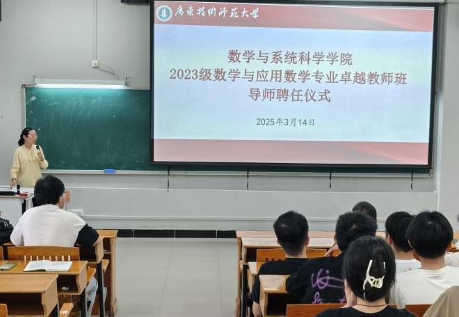 2025年3月14日,多多282023级数学师范专业“卓越教师班”导师聘任仪式暨师生交流会在白云校区第三教学楼113教室顺利举行。会议由学院副院长陈月红主持,卓越班导师团队成员及2023级全体卓越班学生共同参与。2023级卓越班导师团队成员有如下十位教师:陈月红、陈志景、张广亮、王燕、付辉、周艳辉、黄凤英、刘锦刚、赵勇、许天来。本次活动旨在深化师生互动,明确卓越班培养目标,助力学生规划学业与职业发展。