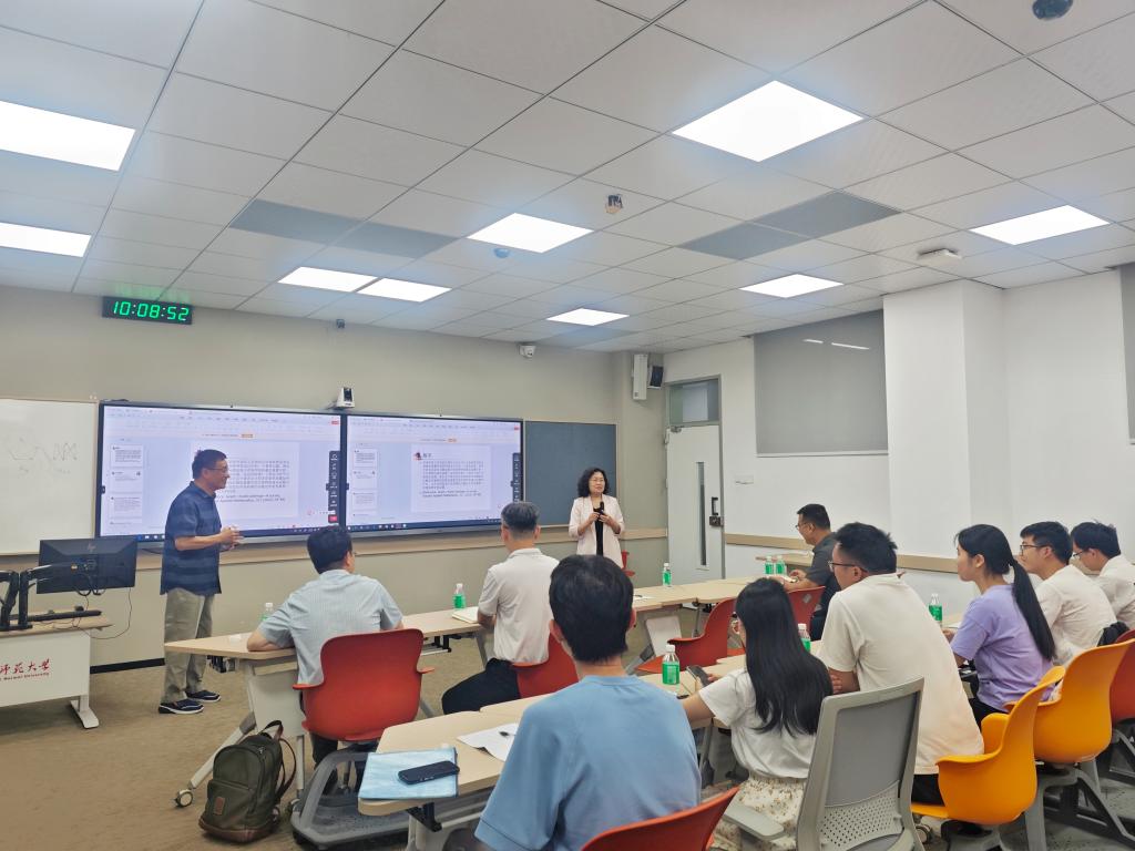 赖虹建教授围绕“多彩染色问题如何从解决供电网络的最优重置中的代理网络通讯问题中产生,图论中多彩颜色问题近年的发展和一些继续研究的问题”,以“船用供配电网络的自我优化修复问题、自我优化修复和无中心处理器的最大流算法、代理(Agent)和多代理系统(Multi-Agent System或MAS) 介绍、多代理系统的通信数学模型 :多彩染色问题的引入”为主要内容,从研究缘起、研究思路、研究过程以及数学如何介入相关应用问题作了详细阐述。赖教授鼓励师生们一定要激活、用好“数学好奇心”,用好奇心感受数学魅力、遨游数学海洋、挑战数学奥秘。与会人员与赖教授进行了深入交流探讨。