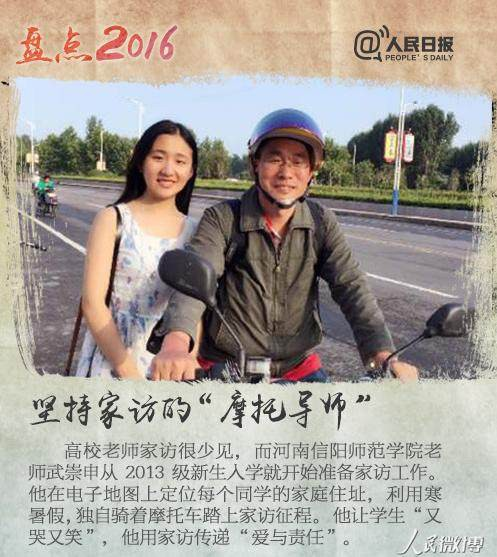 编者按:苏联教育实践家苏霍姆林斯基曾说过,“教育过程中要充满爱和期待,如果把一份爱心放在家访中,就会取得意想不到的效果”。 我校历史文化学院武崇申老师把骑行家访当做师德示范课,从从2015年2月起,利用寒暑假独自骑着摩托行程一万多里,走访了自己所带2013级历史班的绝大部分学生,还有自己担任过班主任、已经毕业的2009级的部分学生。他的事迹被新华社、中国教育报、新浪网等60多家主流媒体报道后,11月23日,河南省教育厅官方微信公众号以“【我为正能量代言】不远千里去家访 践行‘爱与责任’——记信阳师范学院教师武崇申”为题,再次深度报道,现予以转载,以飨读者。