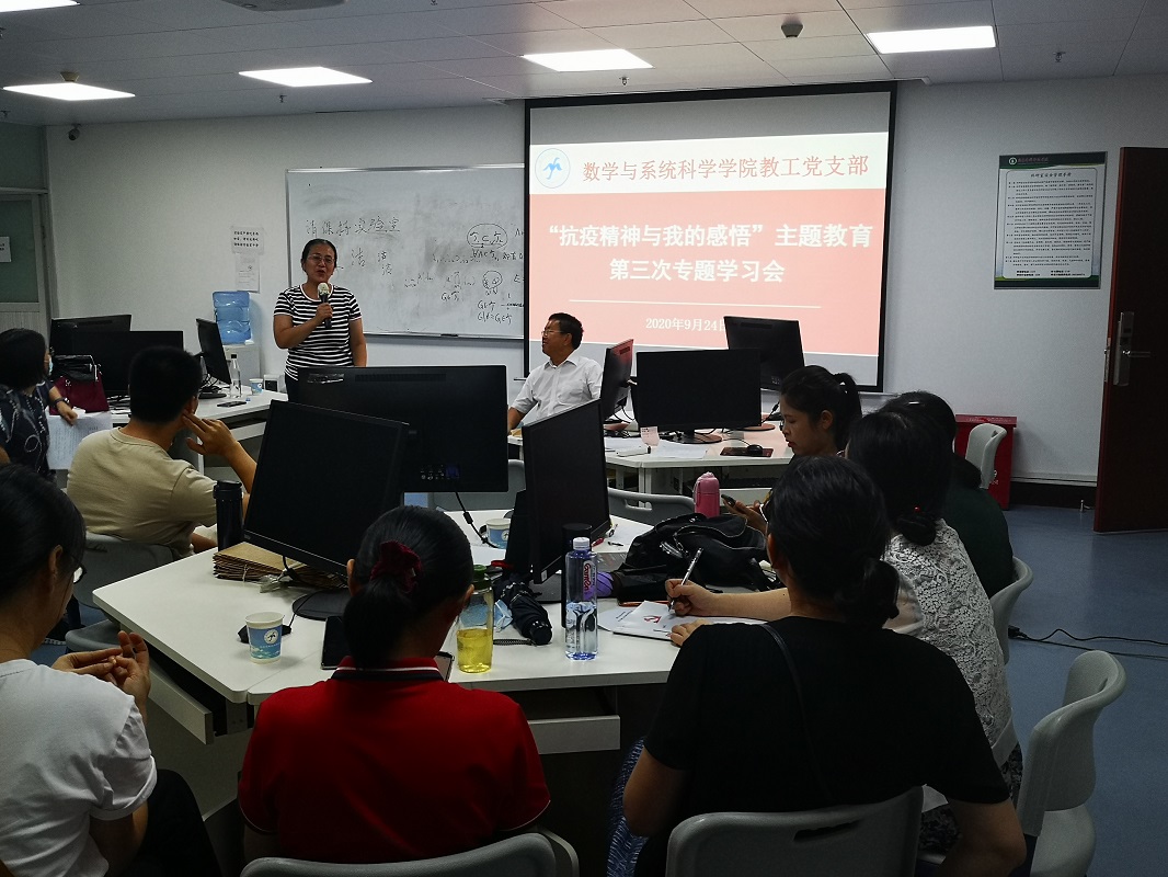 第五次会议是“抗疫精神与我的感悟”主题教育第三次专题学习会。会议首先观看了全国抗击新冠肺炎疫情表彰大会视频。党员结合学习习近平总书记在全国抗击新冠肺炎疫情表彰大会上的讲话精神,以及“共和国勋章”获得者钟南山、全国抗击新冠肺炎疫情先进个人刘正印、全国抗击新冠肺炎疫情先进集体代表桂小妹等同志的发言,谈了自己的学习感悟。赵珲、陈艳美、付辉、唐四云、陈玉明、彭雪、徐峰、翁伟明、尹宗斌等党员,结合“党的坚强领导在抗击疫情中的作用”等七个思考题,在会上作了中心发言。通过学习讨论,进一步加深了党员对“四个自信”“四个意识”“两个坚决维护”的理解,进一步坚定了走中国特色社会主义道路的信心和决心。学院党总支书记房亚兵在会上作了总结讲话。