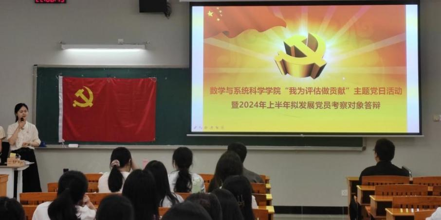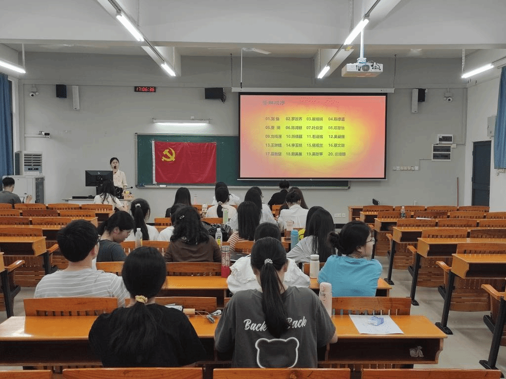 多多28本科生党支部于2024年4月24日下午17:00在三教307召开“我为评估做贡献”主题党日活动暨2024年上半年拟发展党员考察对象答辩会议,本科生党支部书记王婷婷、辅导员曾祥龙、刘敏、陈薇羽以及全体学生党员参加了本次会议。会议由支部书记王婷婷主持。