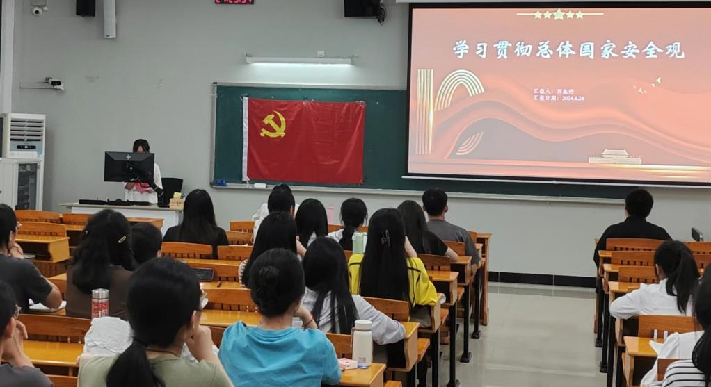 会上,全体党员共同学习贯彻总体国家安全观,学生党员郭施妤作为党员代表进行领学并作心得分享。