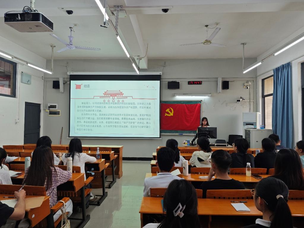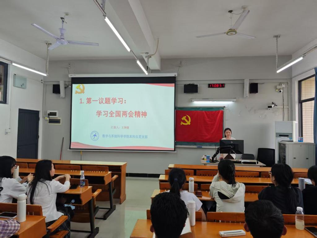 会上,全体党员共同学习全国两会精神。学生党员王琳婕作为党员代表分享学习心得。