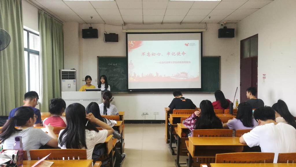 2019年10月24日下午,在白云校区一教301室,学生党支部开展“一月一活动,扬数师风采”主题活动,本期活动主题是“不忘初心、牢记使命--论当代青年大学生的使命和担当”。学生党支部书记王婷婷参加了活动。