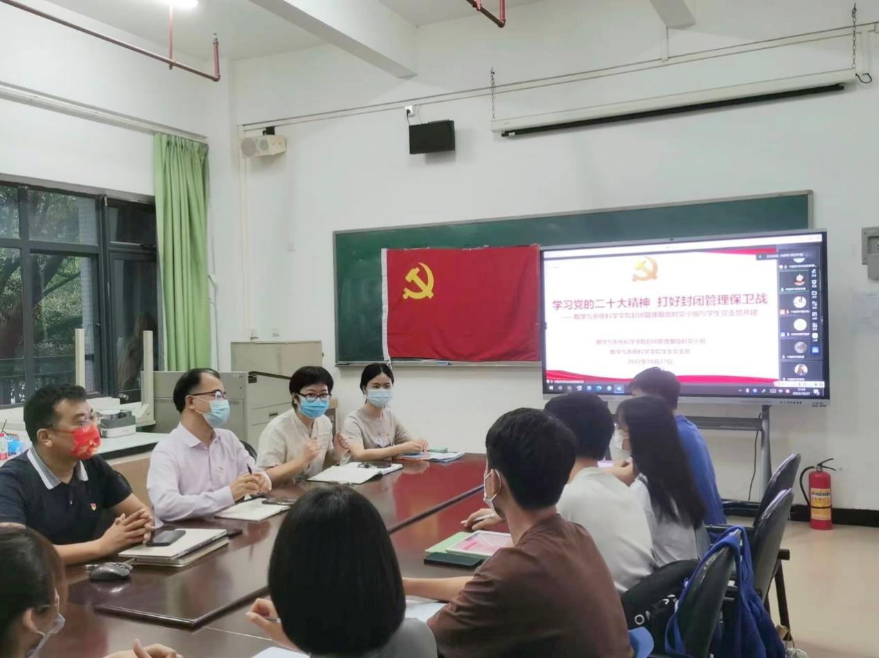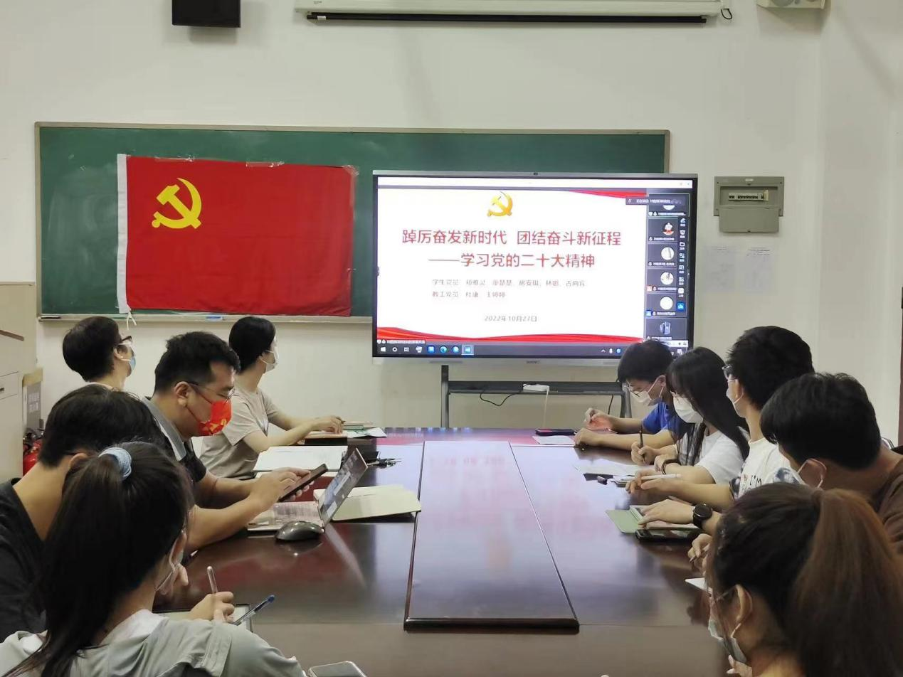 为全面深入学习贯彻党的二十大精神,进一步增强党员的责任感与使命感,多多28封闭管理期临时党小组与学生党支部于10月27日下午17:00在一教213会议室开展党的二十大精神学习分享会。本次分享会的主题是“踔厉奋发新时代,团结奋斗新征程”。党委书记白雪飞、党委副书记许国良、学生党支部书记王婷婷、临时党小组组长杜康以及学生党支部全体党员参加了本次分享会。