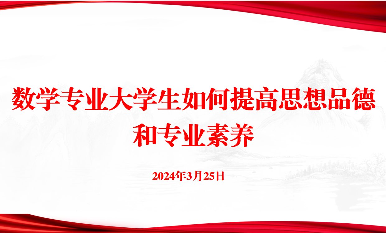 2024年3月25日上午梁海华院长结合党的二十大精神和“两会”精神,“提高思想品德素养”和“扎实的专业基础”22数师4、5、6班学生讲授了题为“数学专业大学生如何提高思想品德和专业素养”的思政课。